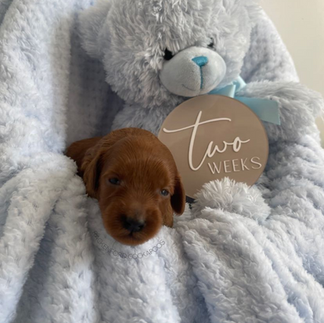 Today Winnie's puppies are two weeks old, their eyes are starting to open and while things will be a bit fuzzy, their sight will soon improve.